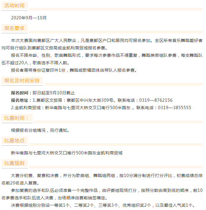 襄都區(qū)首屆“金凱利杯” 歌曲舞蹈大賽開始報(bào)名了!